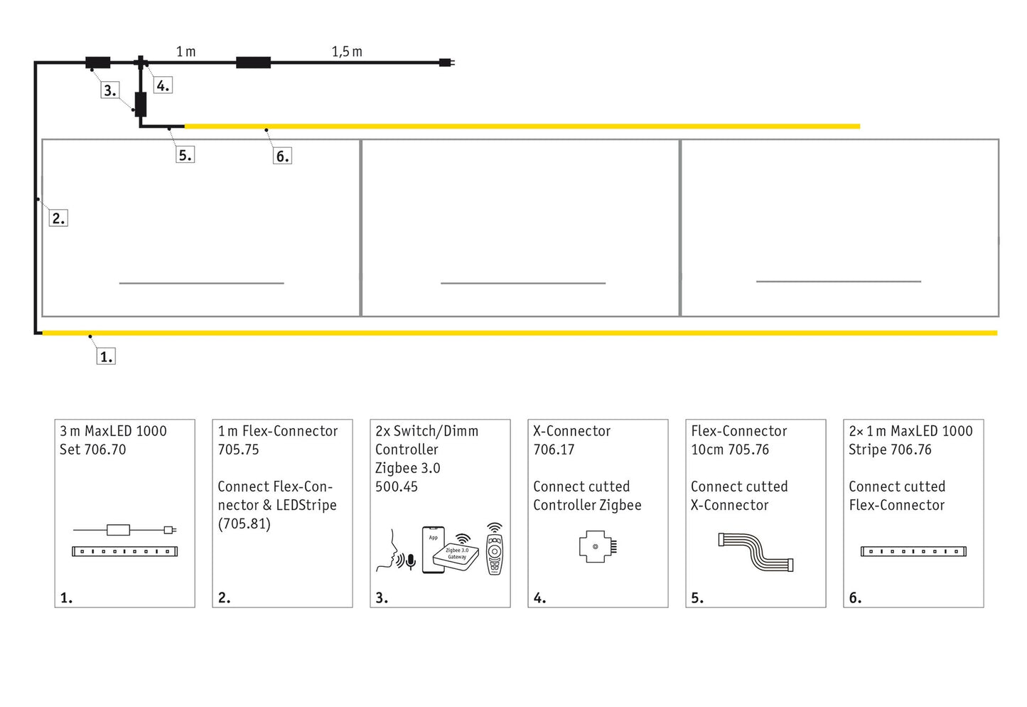 Function Bundle MaxLED 1000 Set Küche Indirekt 40 Watt, 3300 lm 432 LED inklusive SmartHome Zigbee MaxLED Dimm/Schalter