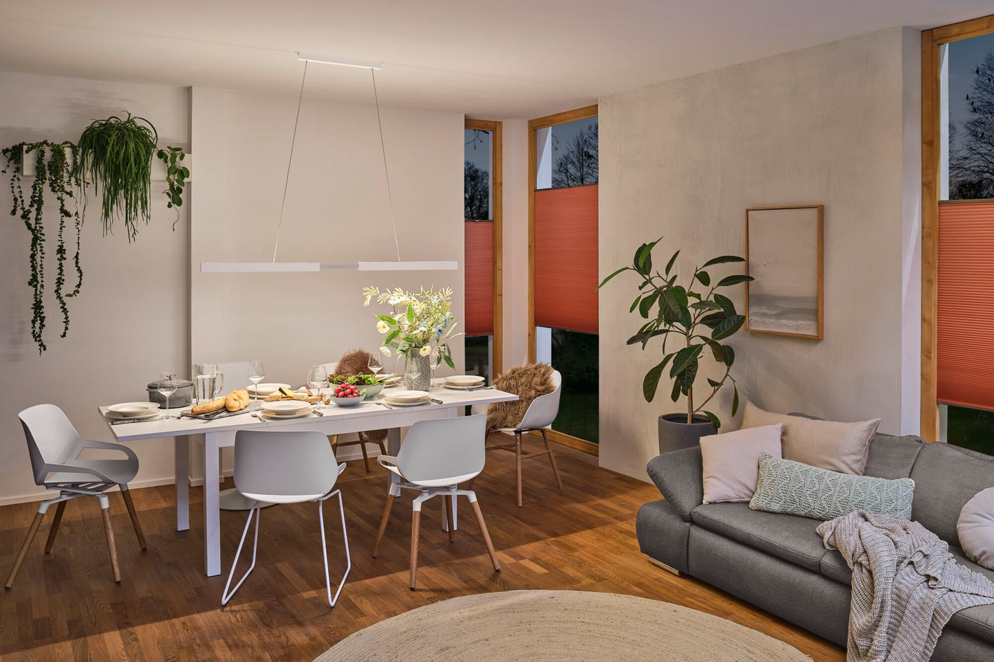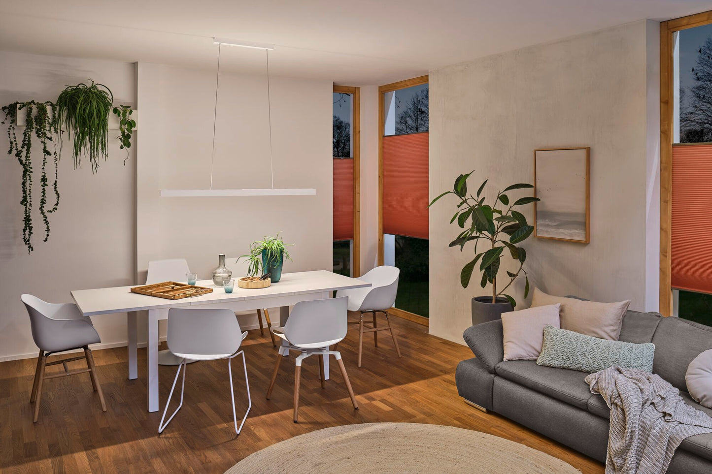 Die ausziehbare Pendelleuchte Aptare in Weiß matt incl. der Fernbedienung Gent ist perfekt zur Beleuchtung ausziehbarer Tische. Sie lässt sich zwischen 90 cm bis 150 cm in der Höhe verstellen und von 132 cm auf 180 cm verlängern.Nach oben gibt sie 40% indirektes und nach unten 60% direktes Licht ab. Mit der enthaltenen Zigbee-Fernbedienung lässt sich sowohl schalten als auch dimmen.