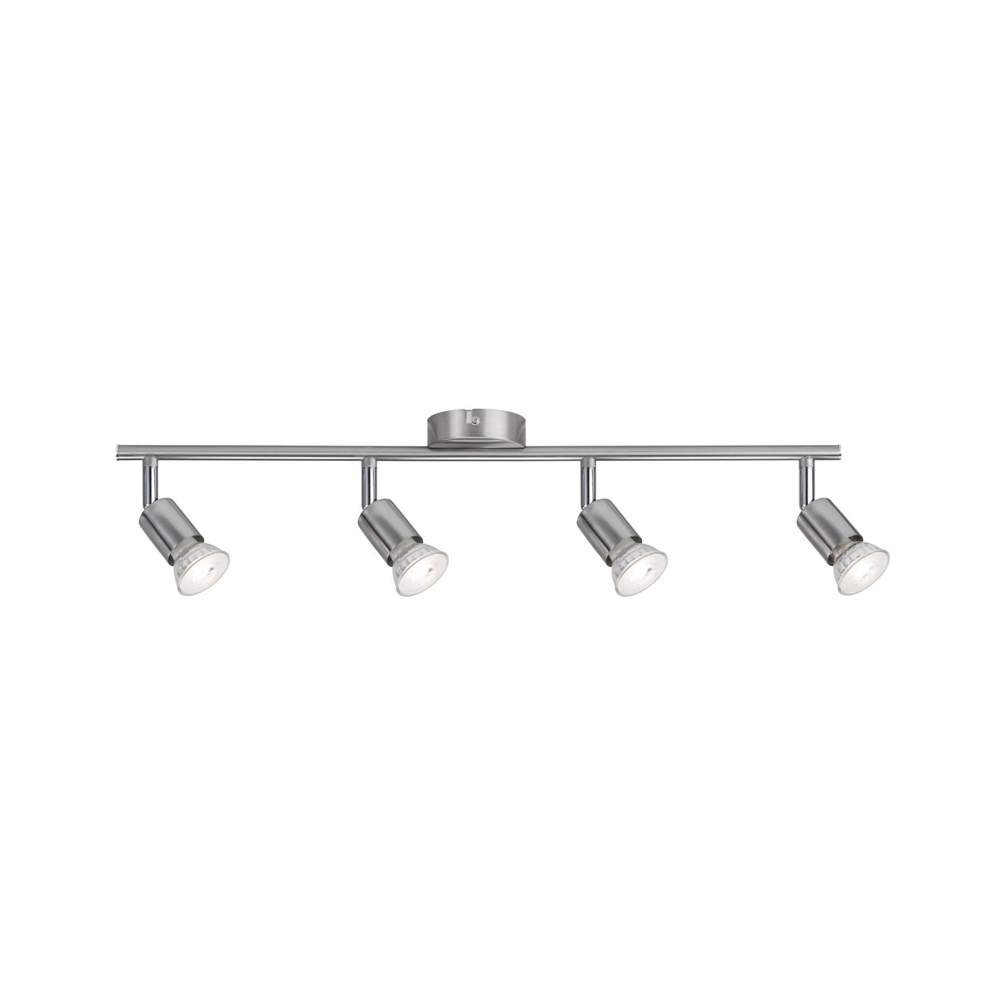 Das vierflammige Spotlight der Serie Carolina in Nickel matt eröffnet vielfältige Einsatzmöglichkeiten und fügt sich mit seinem schlichten Design nahtlos in jede Wohnsituation ein. Das Leuchtmittel ist frei wählbar. Es lassen sich beliebige Reflektorlampen mit GU10-Sockel und einer Leistung von max. 4x10W einsetzen.